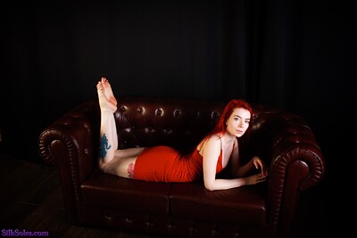 Tags: redhead, barefoot, satin, silk, blouse, skirt, business wear, nude